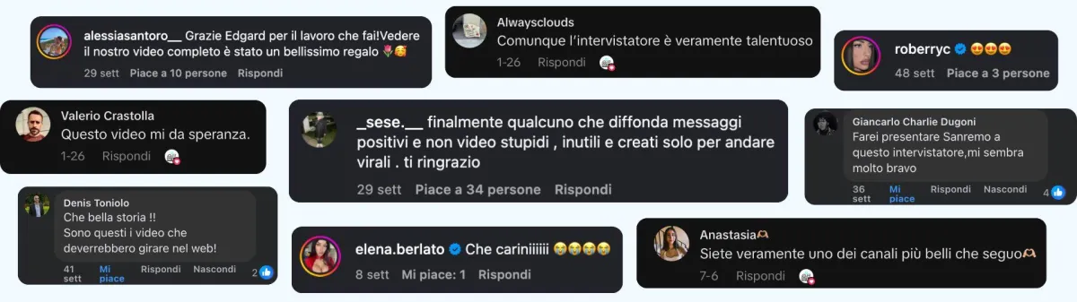 “Finalmente qualcuno che diffonda messaggi positivi e non video stupidi, inutili e creati solo per andare virali. Ti ringrazio“